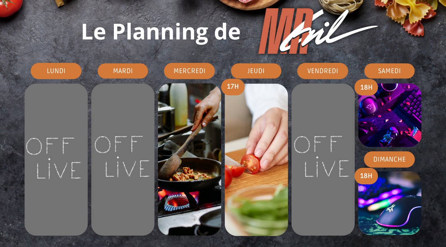 Hey, c'est ici que vous pouvez checker mes plannings de lives chaque semaine !